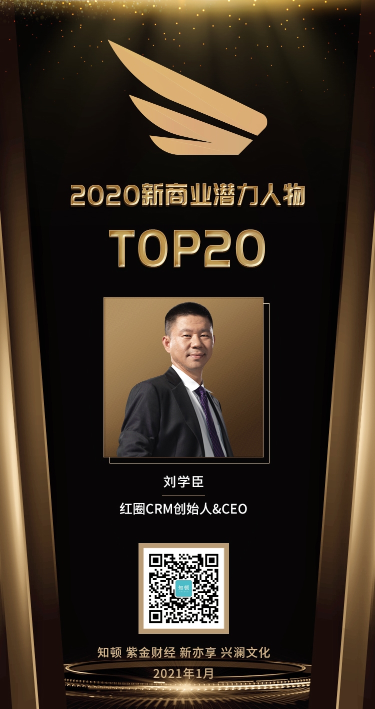 紅圈?CRM?與創始人劉學臣雙雙入選《2020?新商業潛力榜》